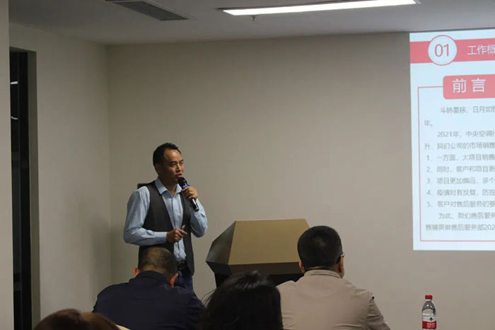 最后,由研發(fā)部梁志平作技術分享。梁工對2021年度產品技術總結按照傳統(tǒng)行業(yè)、軌道交通、醫(yī)療凈化、實驗室、電氣控制、智慧空調六大版塊進行分享。以及,結合市場需求與技術部門共同定制了現有年度計劃目標開發(fā)計劃。
