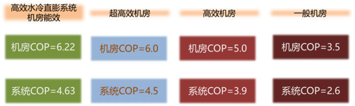 按照美國ASHRAE制冷主機機房能效比評價指標中,西屋康達高效水冷直膨系統(tǒng)(機房能效比5.5~6.5),處于優(yōu)秀階段。
