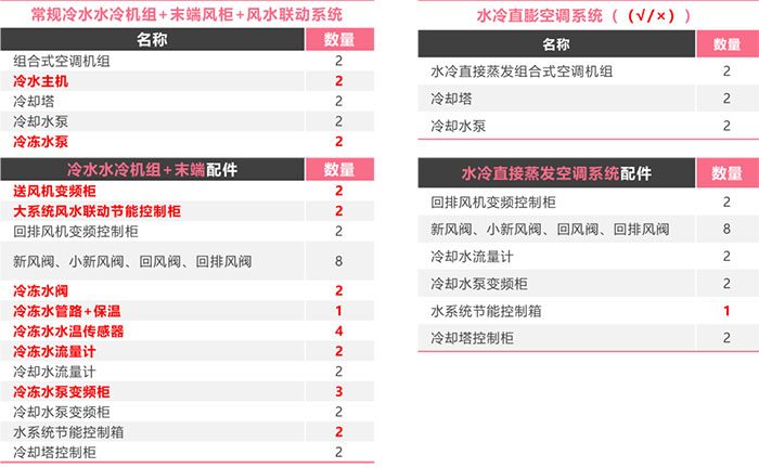 水冷直膨空調(diào)系統(tǒng)與常規(guī)空調(diào)系統(tǒng)——設(shè)備數(shù)量對比
