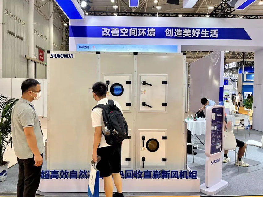 開展首日,西屋康達中央空調(diào)展位人潮涌動,在已獲多項專利的西屋康達超高效自然冷卻全熱回收直膨新風(fēng)機組前,業(yè)務(wù)同事從機組原理、穩(wěn)定性、節(jié)能等方面向觀眾作了詳細的介紹,吸引了大批國內(nèi)醫(yī)院建設(shè)管理者及醫(yī)療潔凈工程單位負責(zé)人駐足。